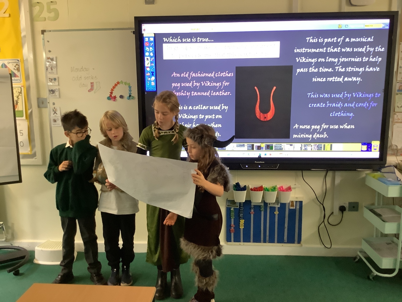 We took a closer look at the key events that occurred during the Saxon/Viking period in History. It was interesting to see how many changes occurred! We also worked in groups to identify the use of this object and discovered it was a lucet - a tool used in cordmaking or braiding.  We made bracelets out of wool using a lucet. It was quite fiddly, but once you get the hang of it, it’s great fun! All of the labels and descriptions were muddled for the artefacts. We spent time matching them together and looked through what each artefact was and what it tells us about the past.